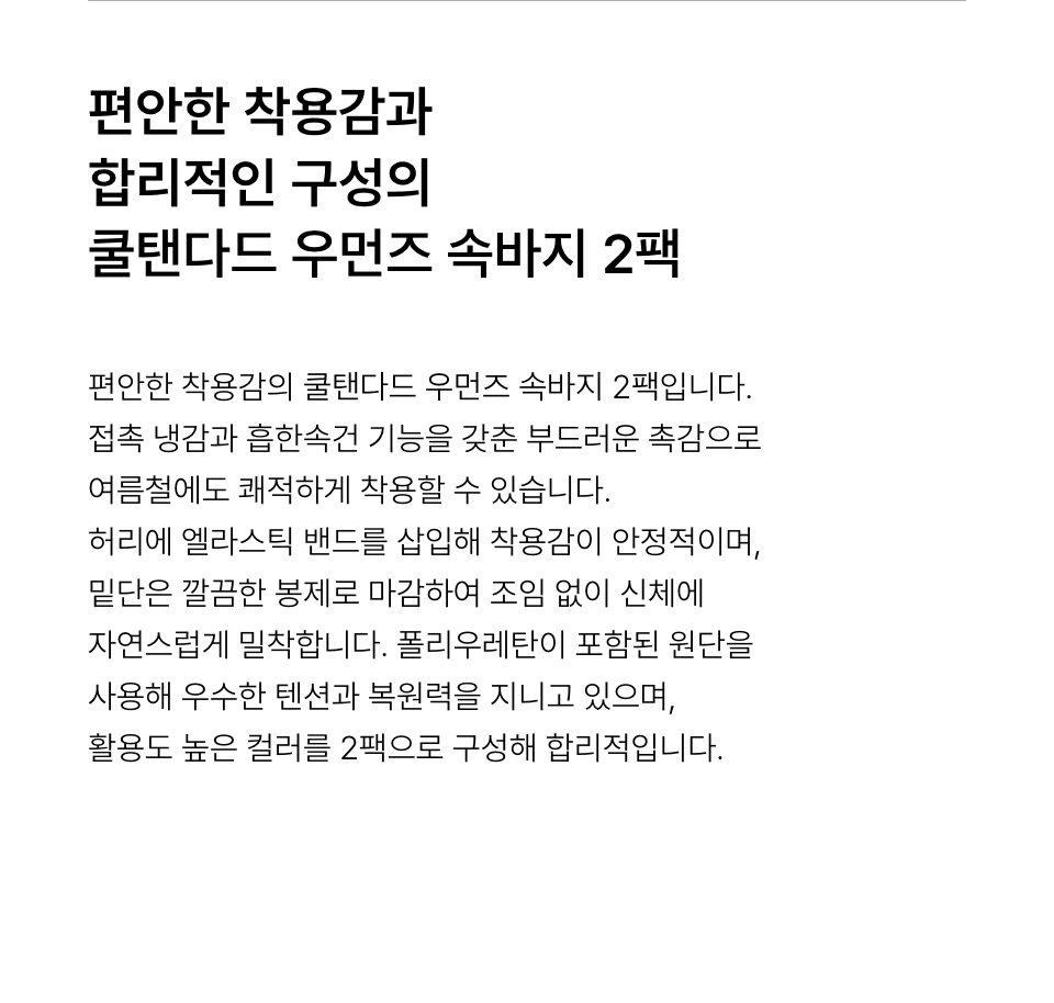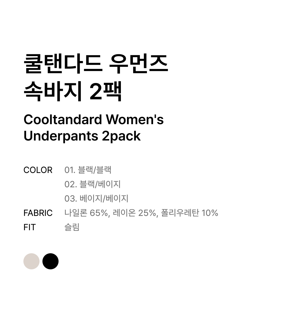 [쿨탠다드] 우먼즈 심리스 Y존 커버 속바지 2팩