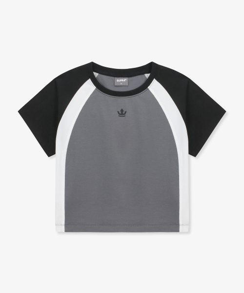 여성 컬러 배색 반팔 티셔츠(GRAY)