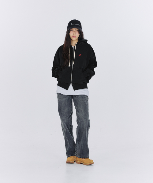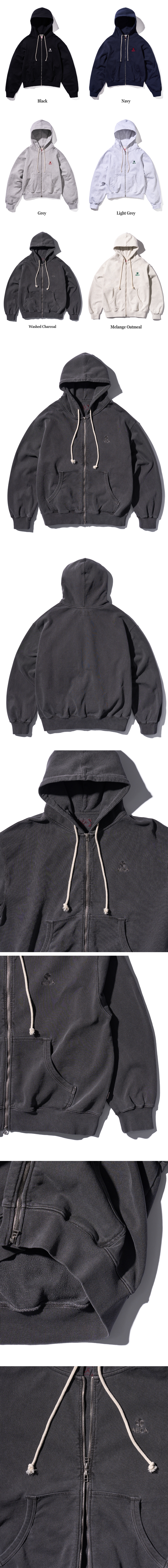 EVERYDAY AECA CLOVER ZIP UP HOODIE-WASHED CHARCOAL