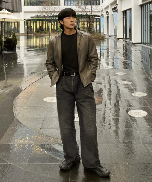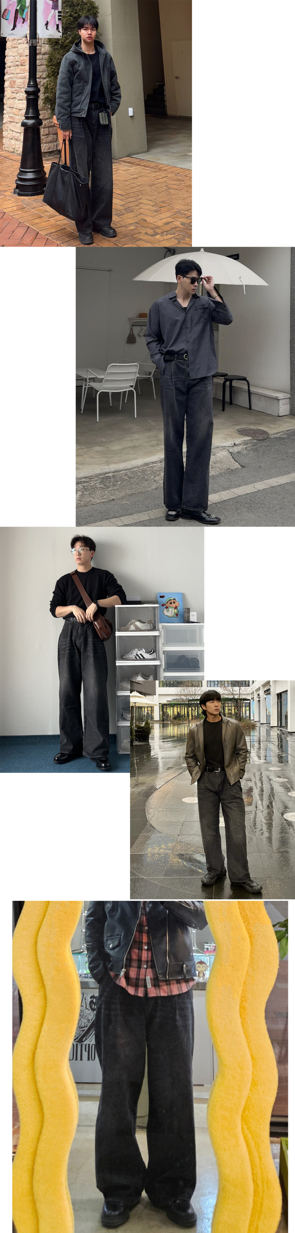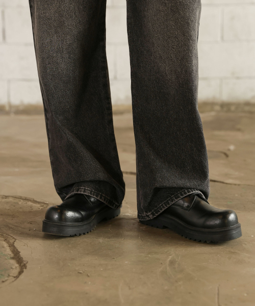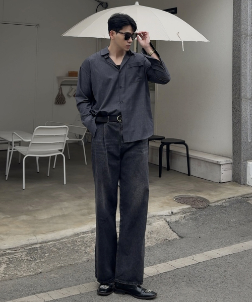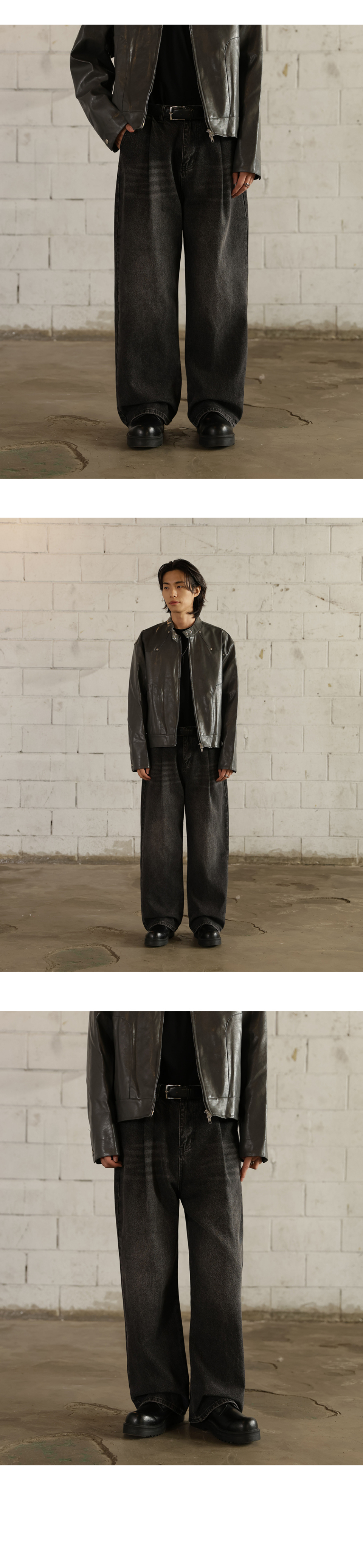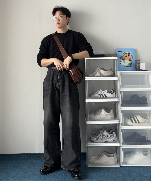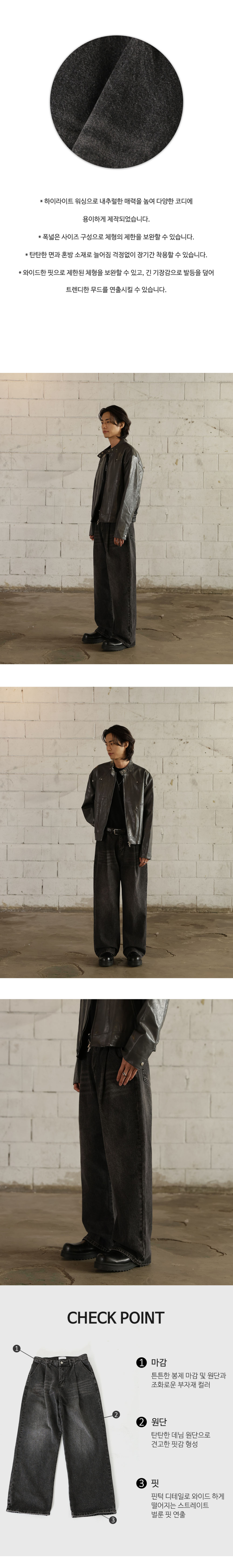 핀턱 빈티지 워싱 벌룬핏 와이드 데님팬츠(Black)