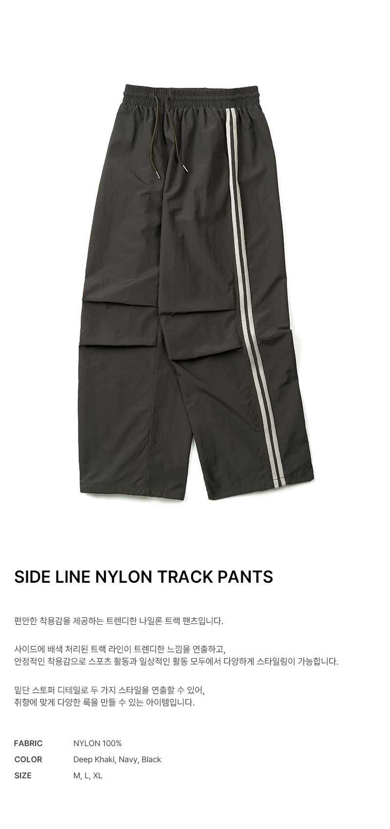 사이드 라인 나일론 트랙 팬츠 (DEEP KHAKI)