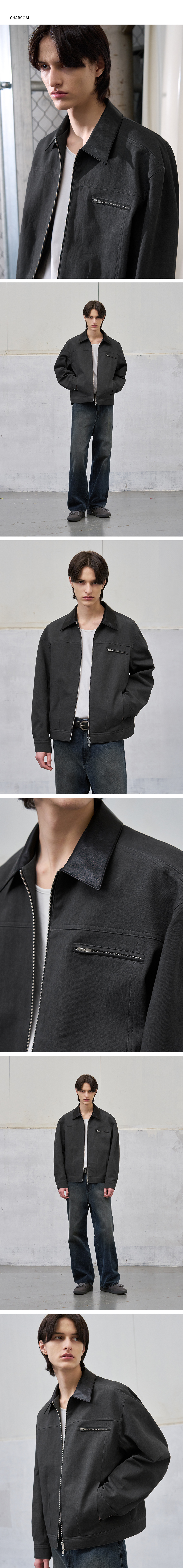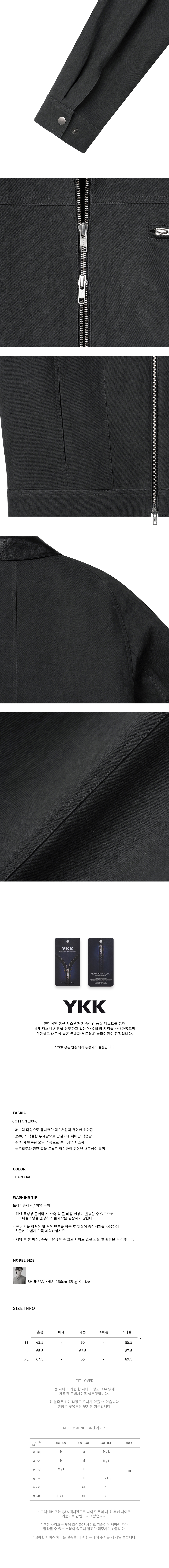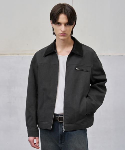 워시드 코튼 블루종 점퍼 자켓 다크그레이