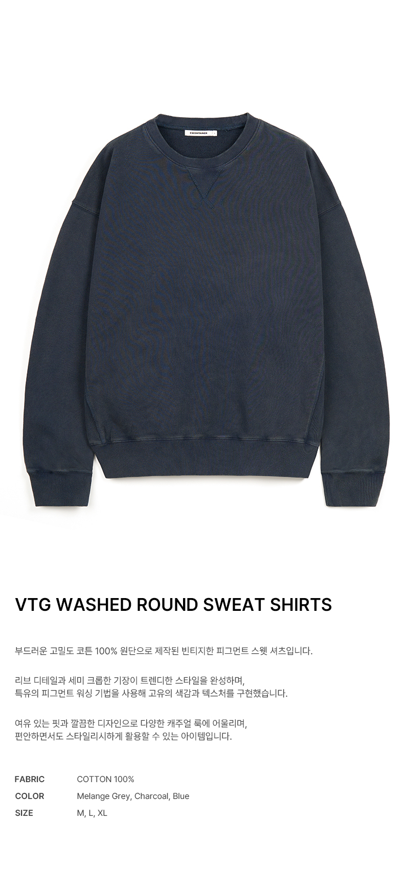 VTG 워시드 라운드 스웻 셔츠 (MELANGE GREY)