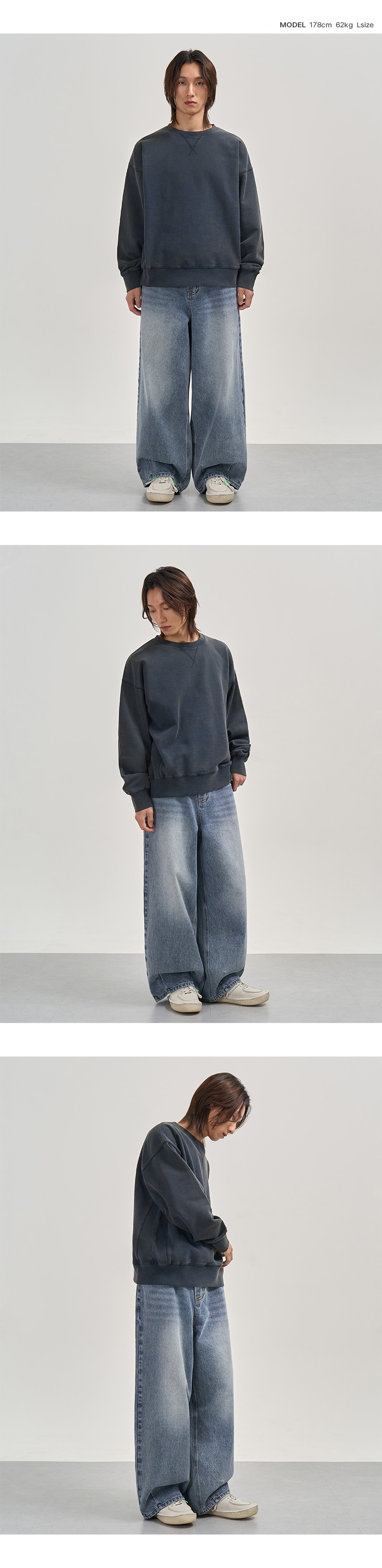 VTG 워시드 라운드 스웻 셔츠 (BLUE)