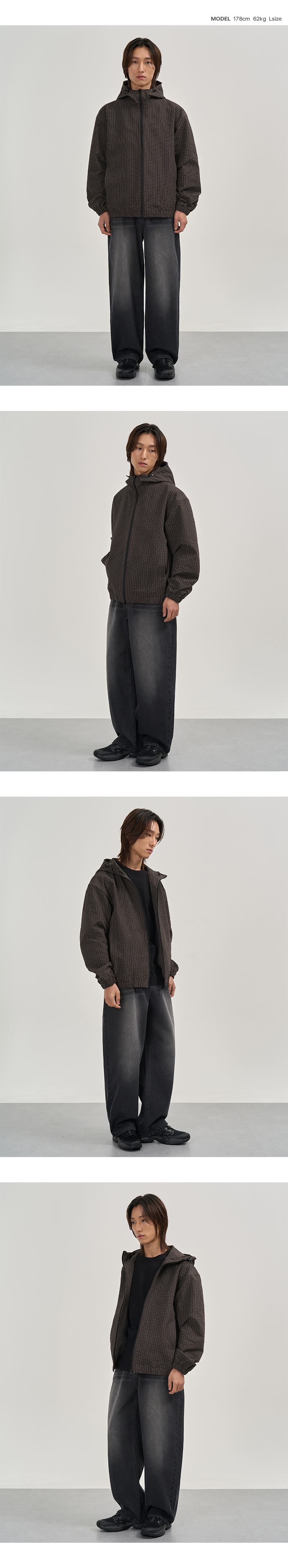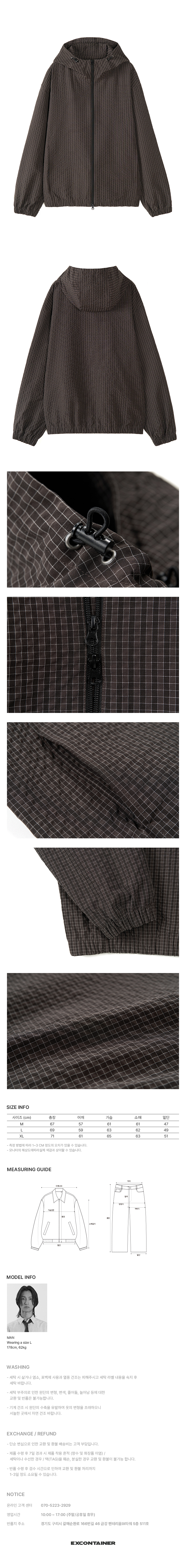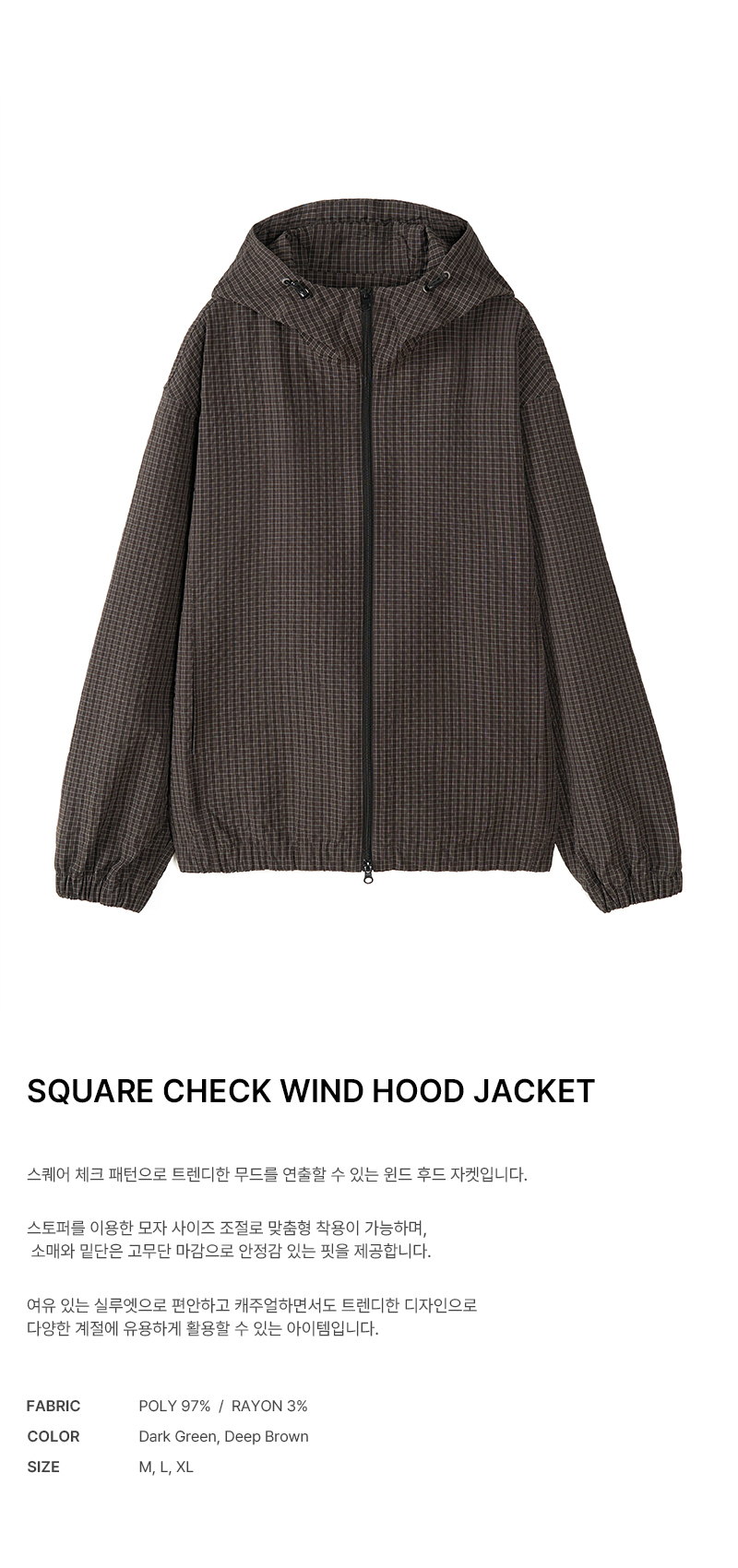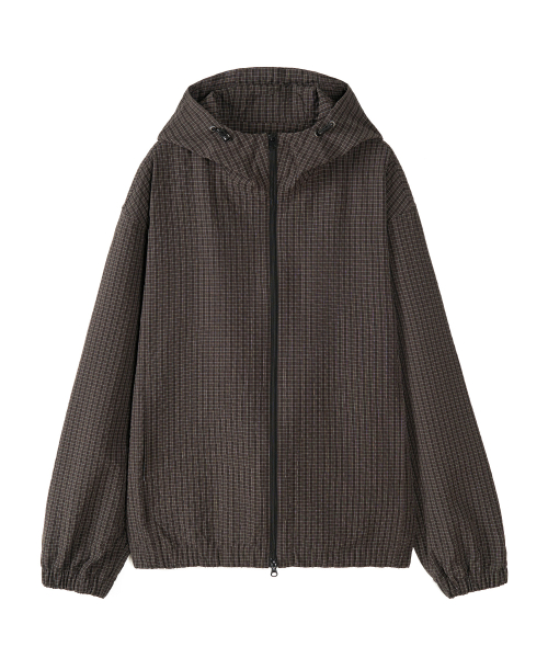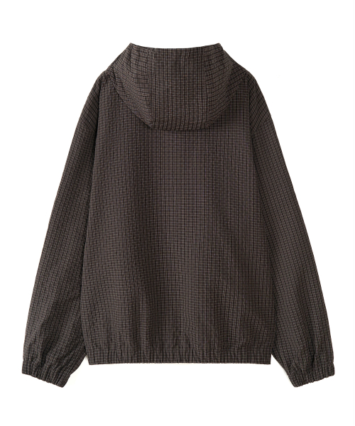 스퀘어 체크 윈드 후드 자켓 (DEEP BROWN)