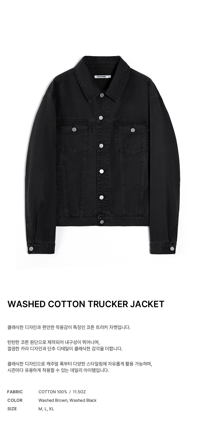 워시드 코튼 트러커 자켓 (WASHED BLACK)