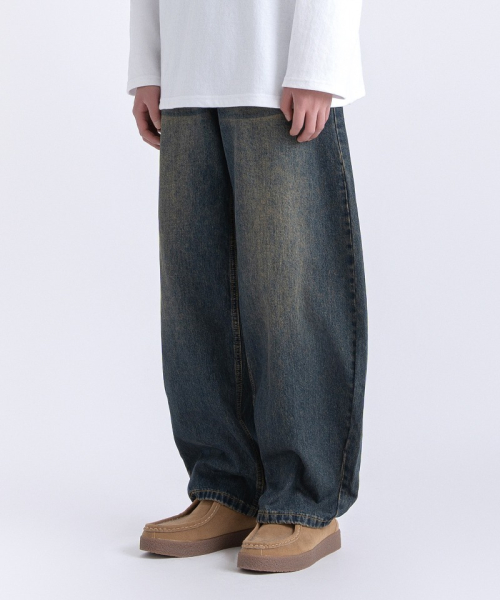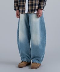 세미 벌룬 캣워싱 데님 팬츠 라이트블루