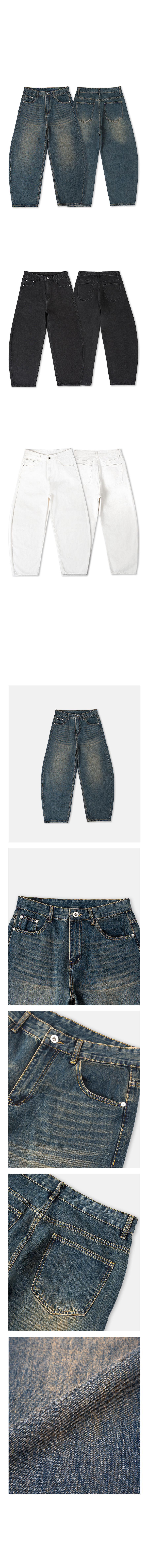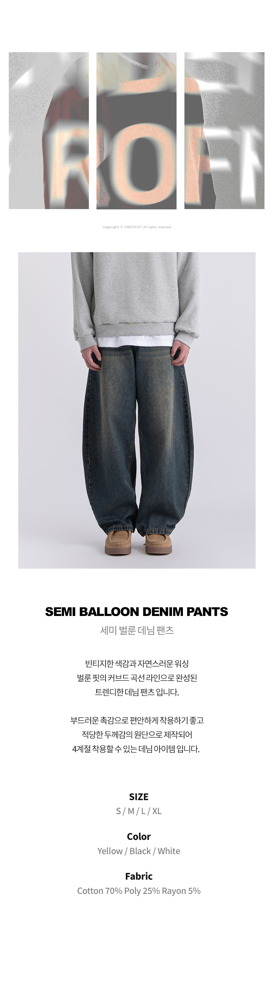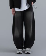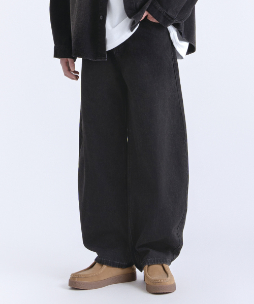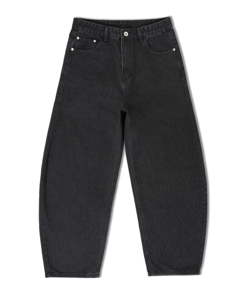 세미 벌룬 캣워싱 데님 팬츠 블랙