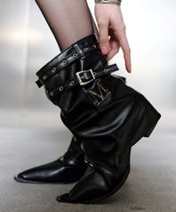 피에트 메탈 로고 아일렛 벨트 레더 부츠