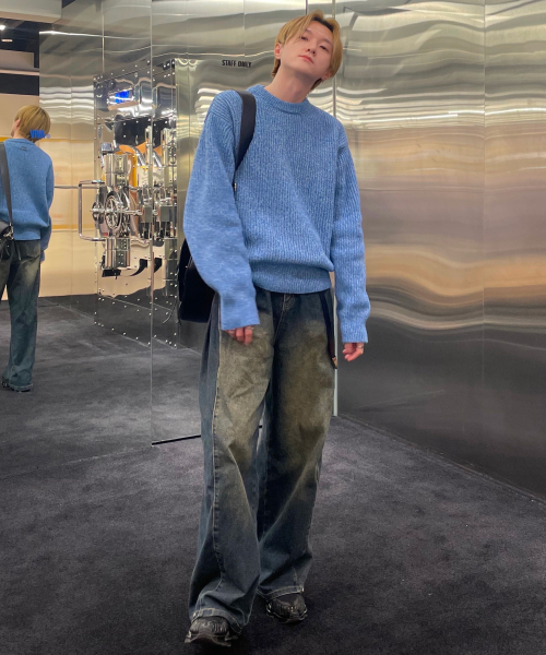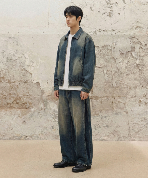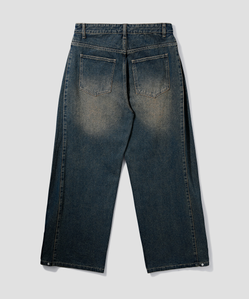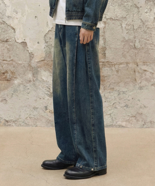 빈티지 사이드 턱 와이드 데님 팬츠 [데저트 블루]