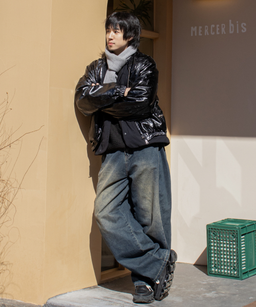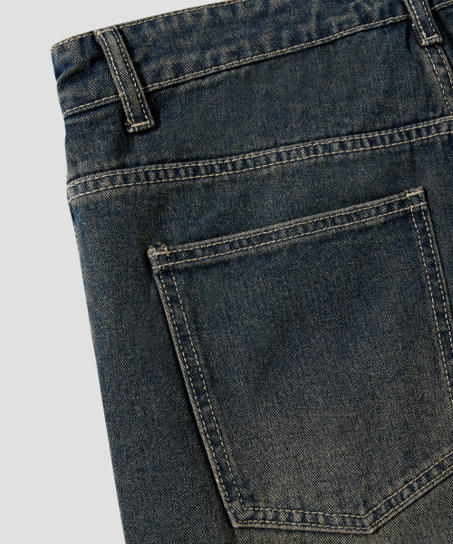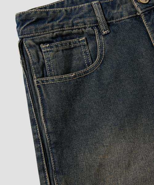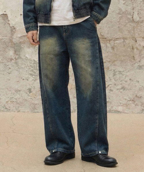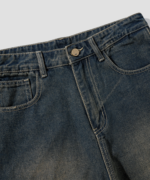 빈티지 캣워싱 와이드 데님 팬츠 [다크 블루]