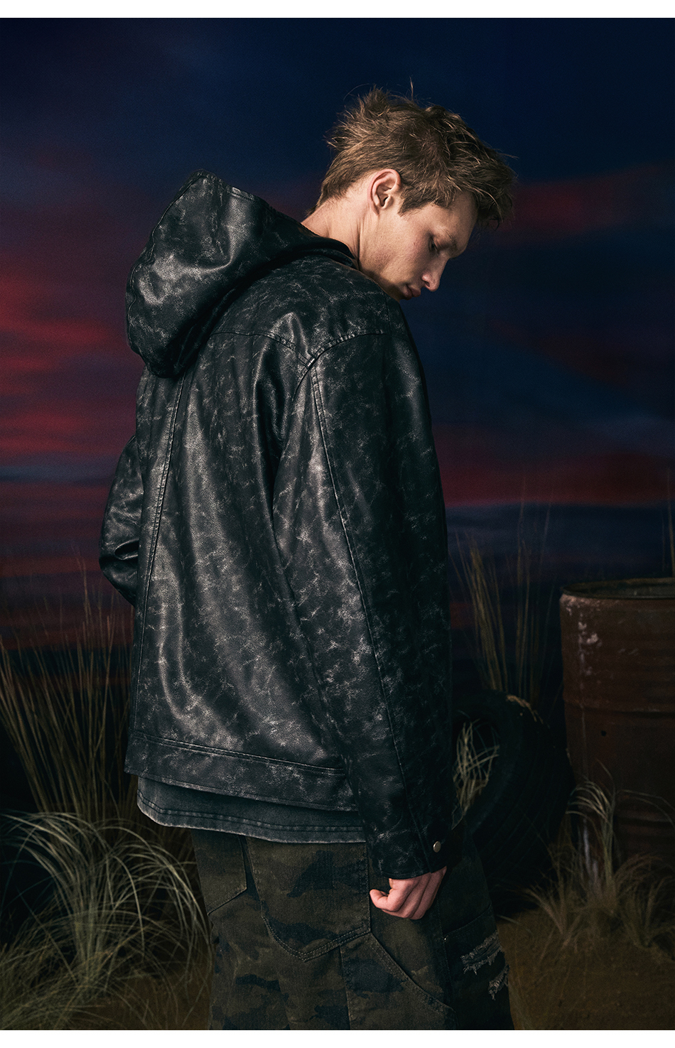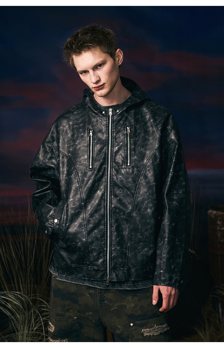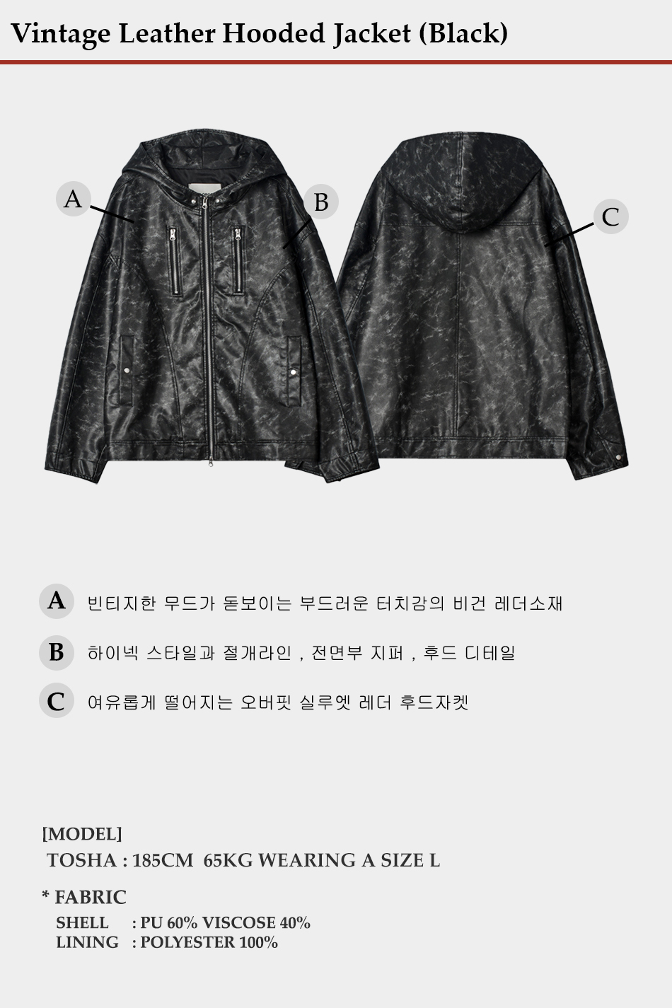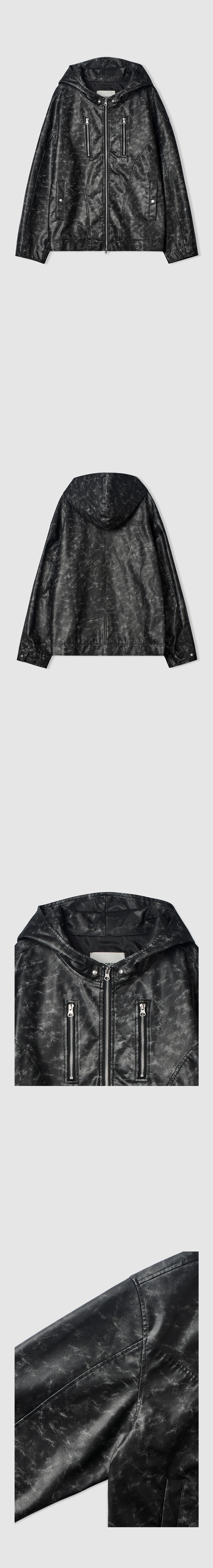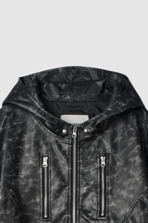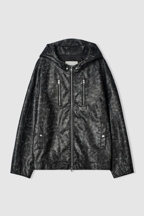 빈티지 레더 후드자켓 (블랙)