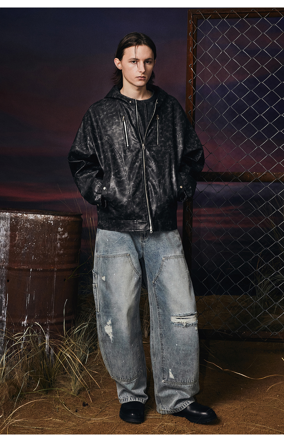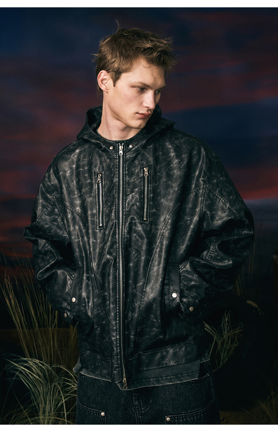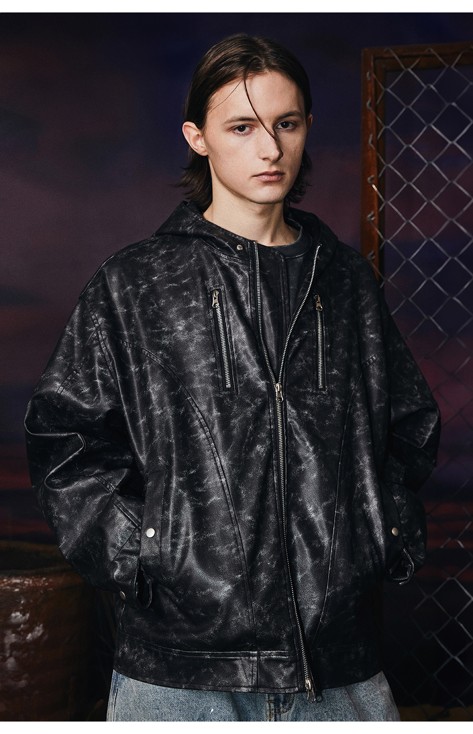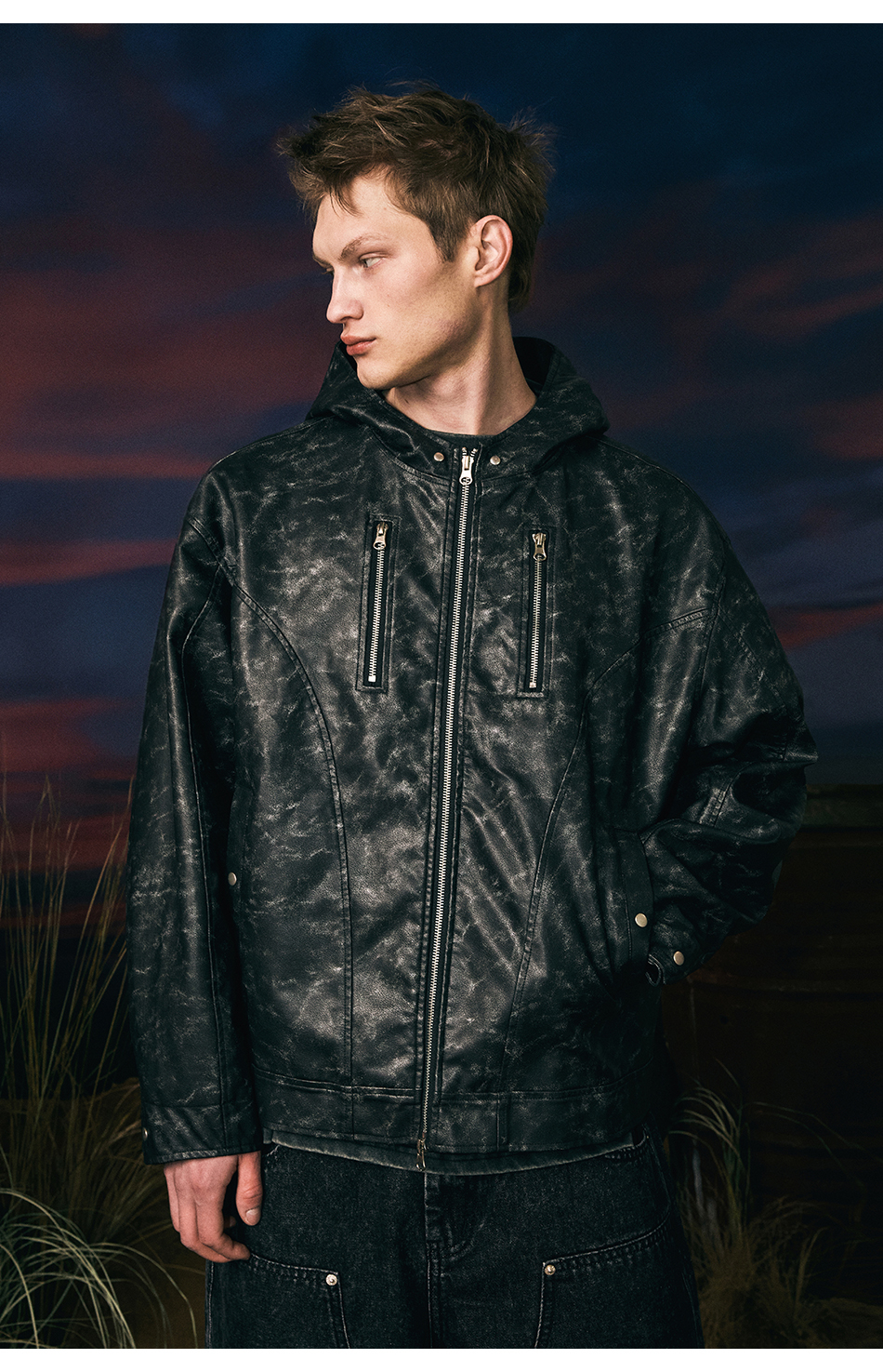 빈티지 레더 후드자켓 (블랙)