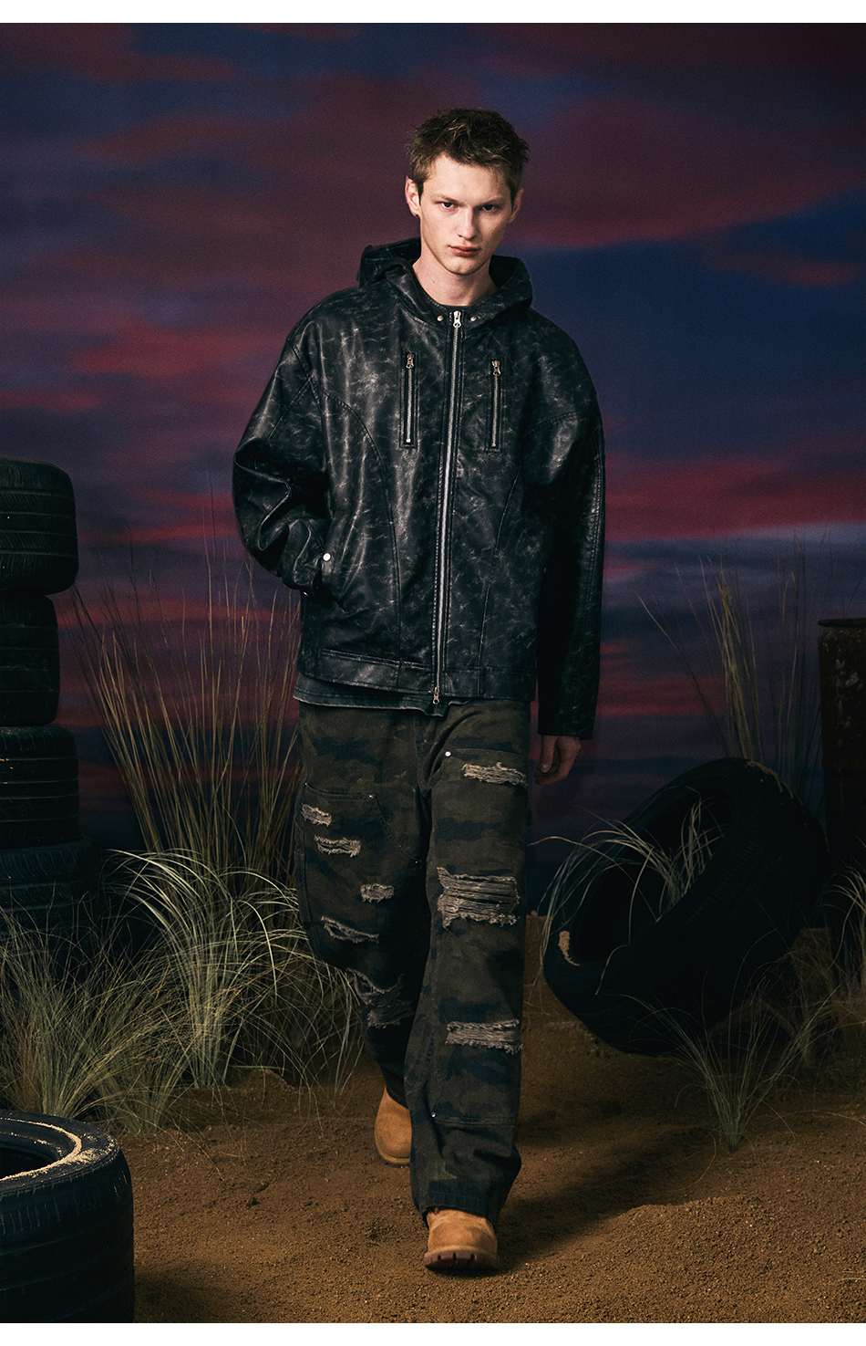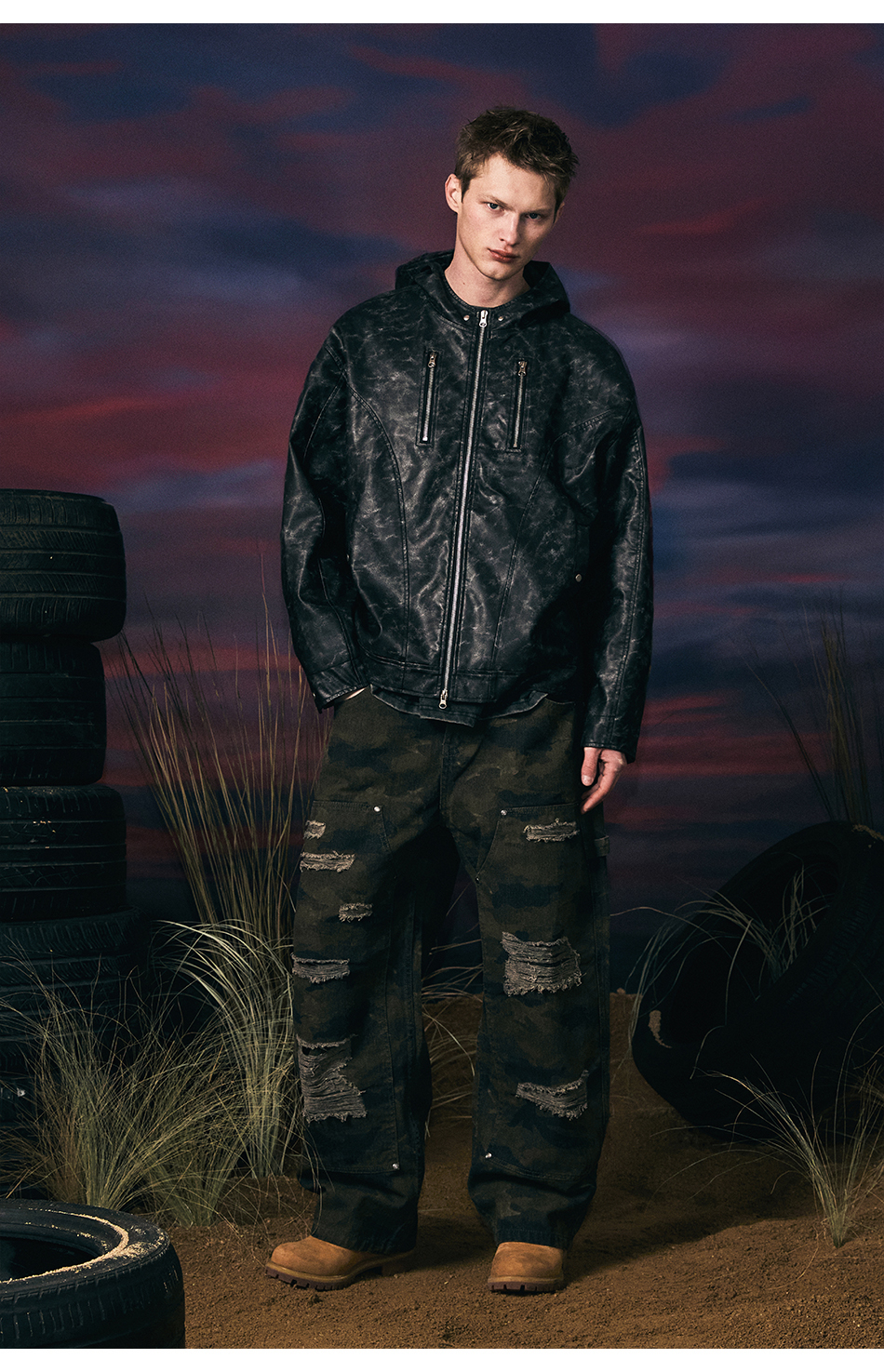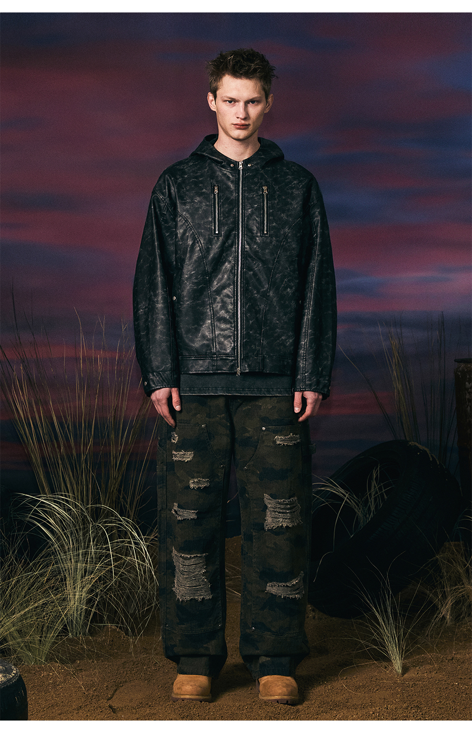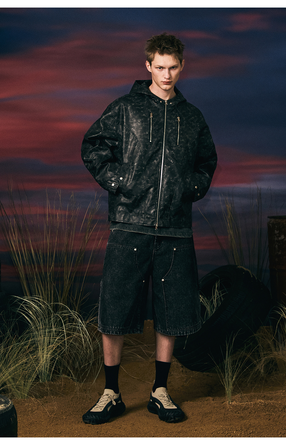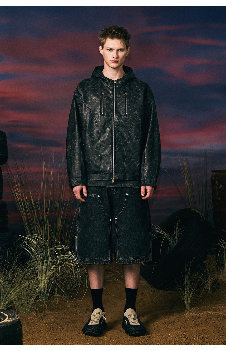 빈티지 레더 후드자켓 (블랙)