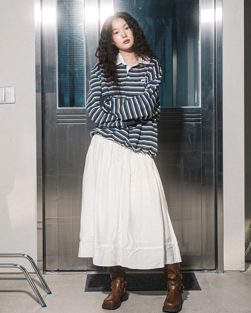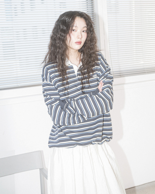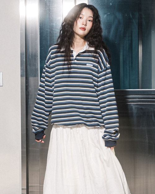 FF STRIPE RUGBY SWEATSHIRT(GREY)
