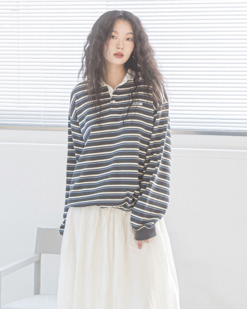 FF STRIPE RUGBY SWEATSHIRT(CHARCOAL)