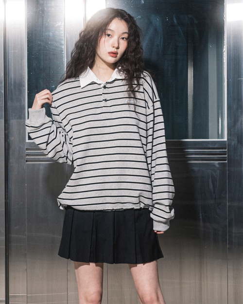 FF STRIPE RUGBY SWEATSHIRT(GREY)