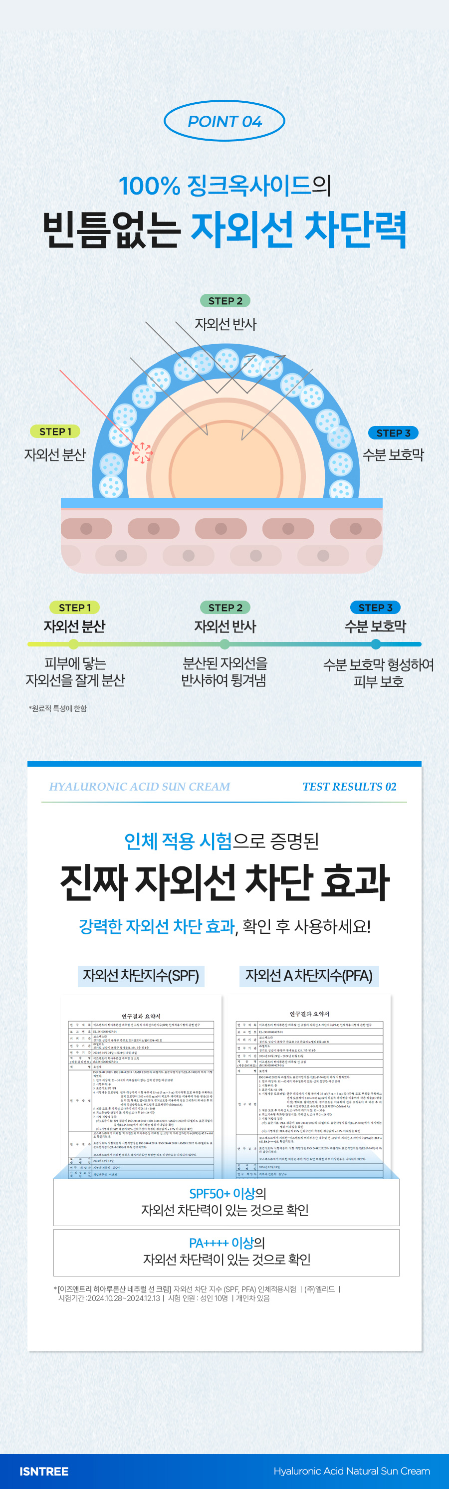 이즈앤트리(ISNTREE)는 피부에 자극을 줄 수 있는 유해 의심 성분을 엄격히 배제하고 피부에 꼭 필요한 자연 원료만을 정직하게 담아 제품을 개발합니다.