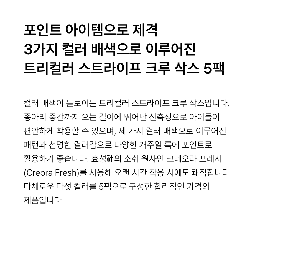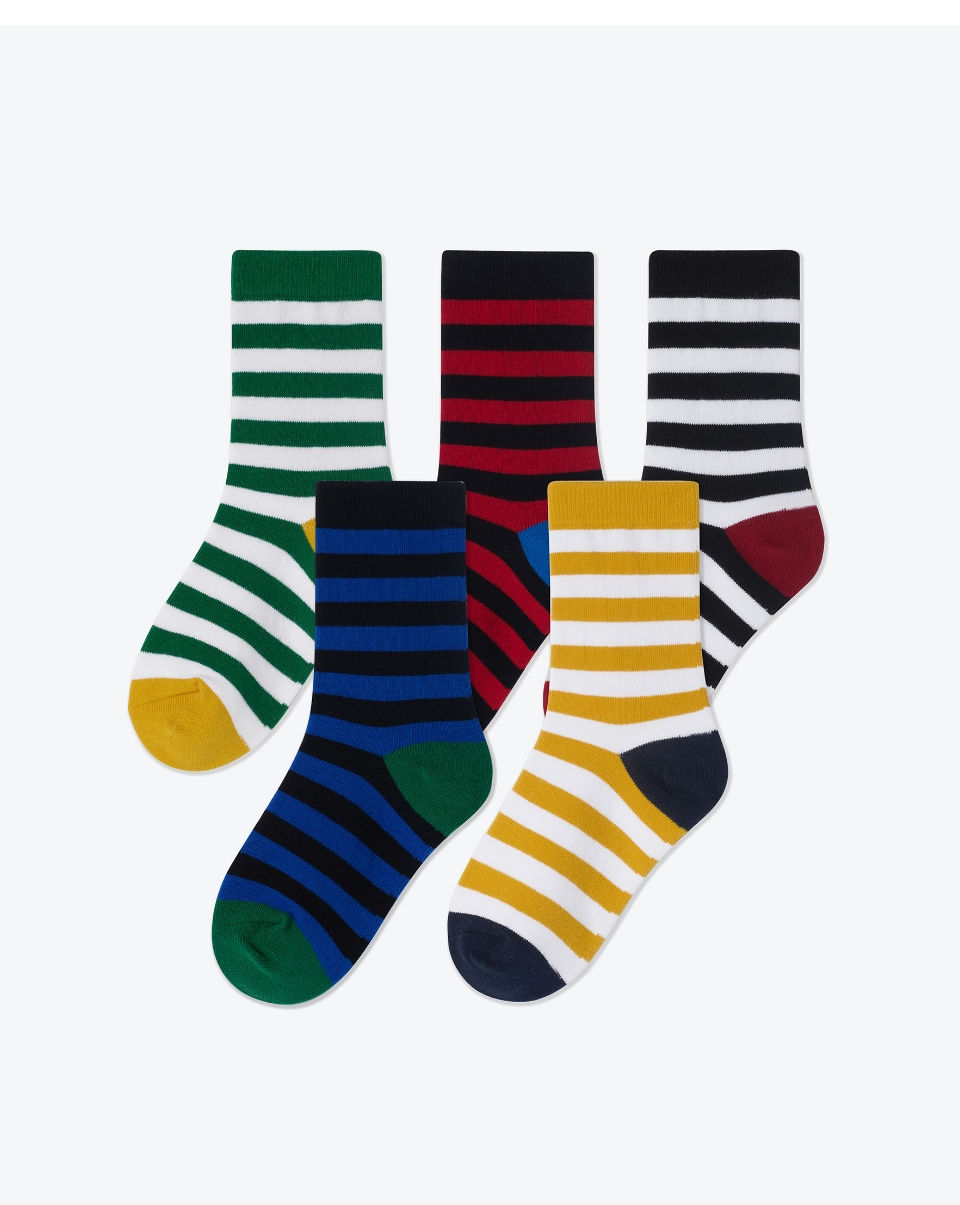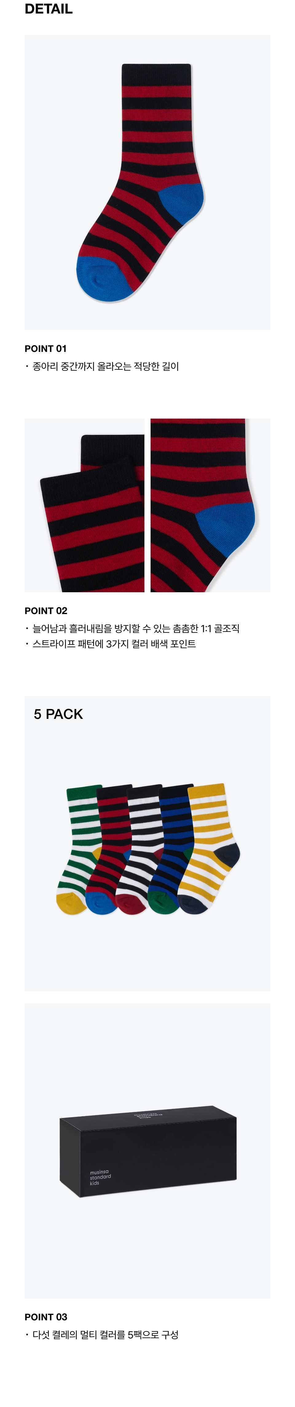 트리컬러 스트라이프 크루 삭스 5팩 [멀티]
