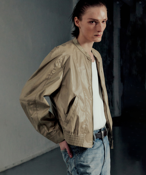 글레이즈드 코튼 바이커 자켓 베이지