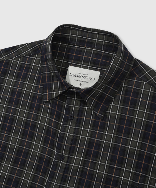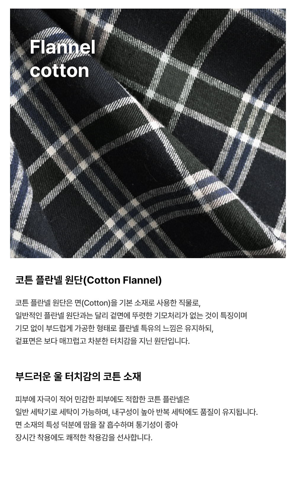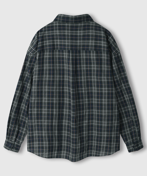 프리미엄 오버핏 플란넬 포켓 체크 셔츠 [네이비]