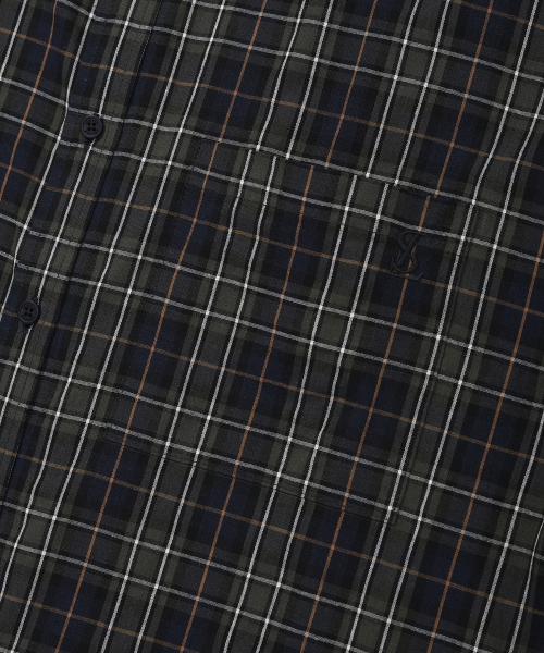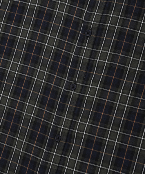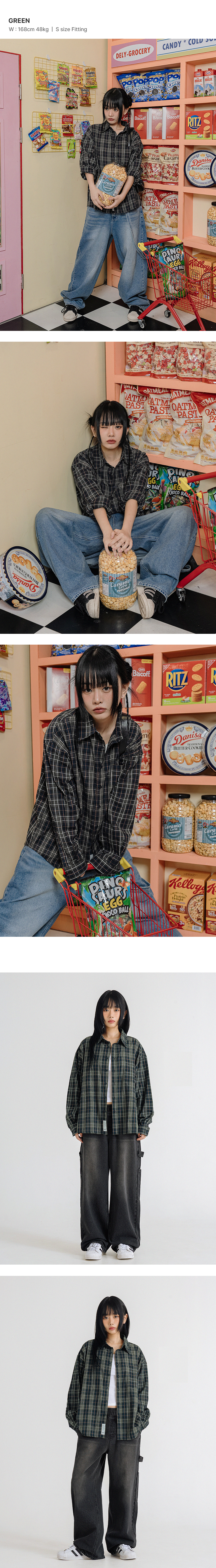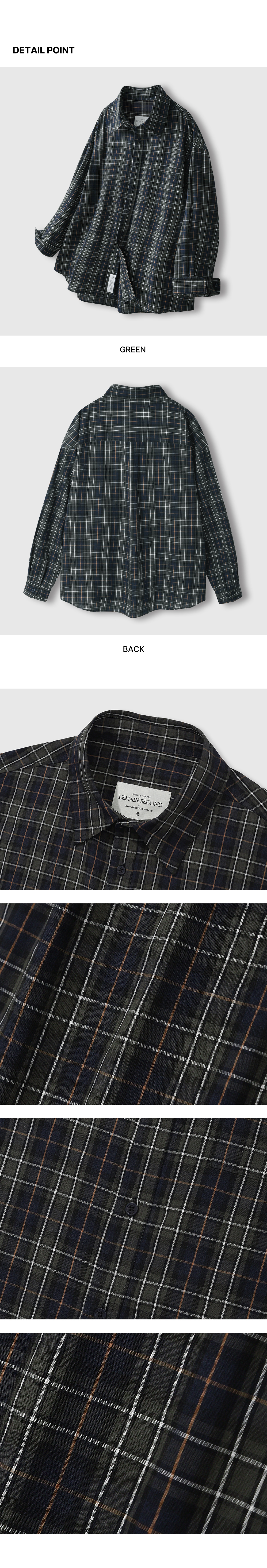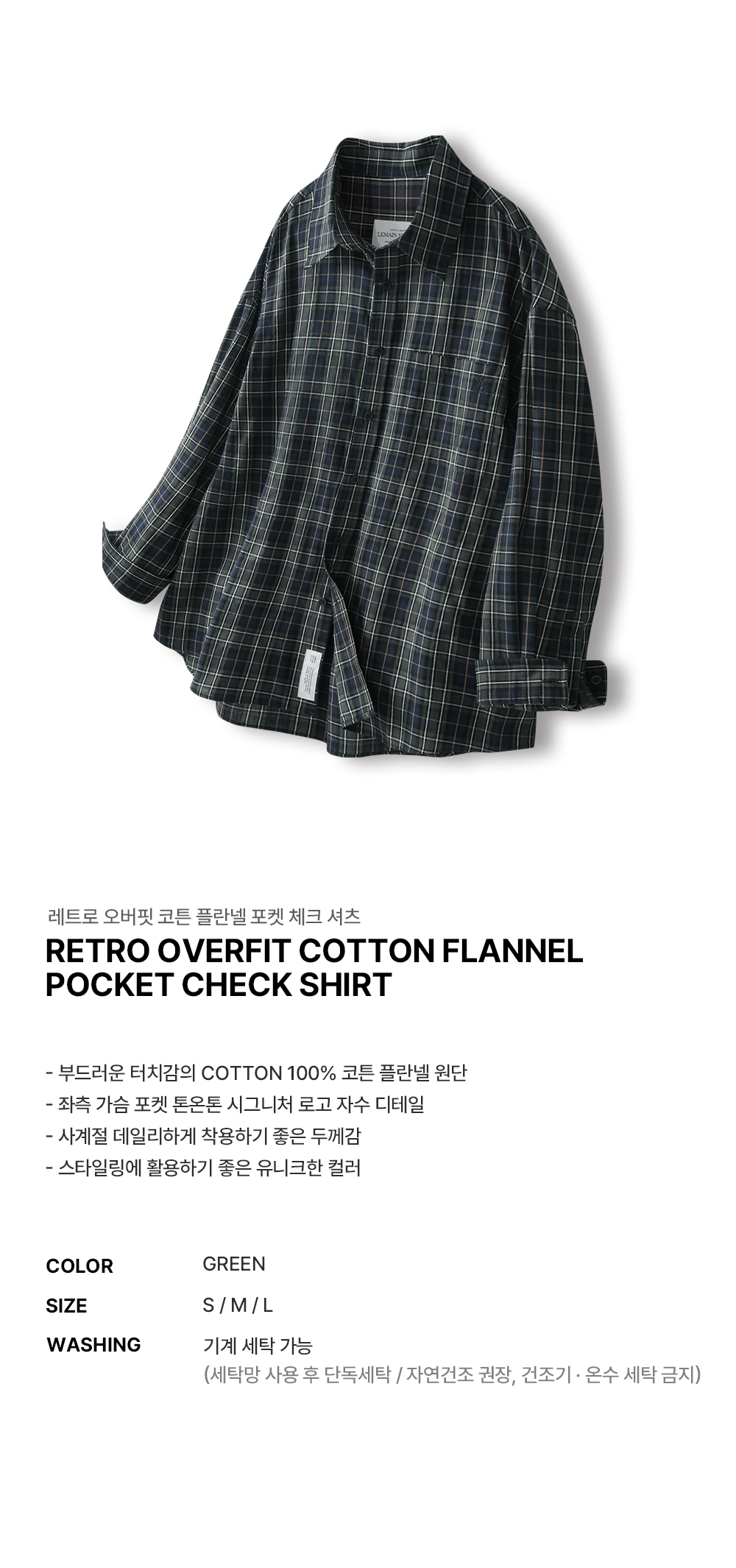 레트로 오버핏 코튼 플란넬 포켓 체크 셔츠 [그린]