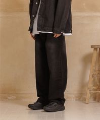 데스트 워싱 데님 팬츠 흑청