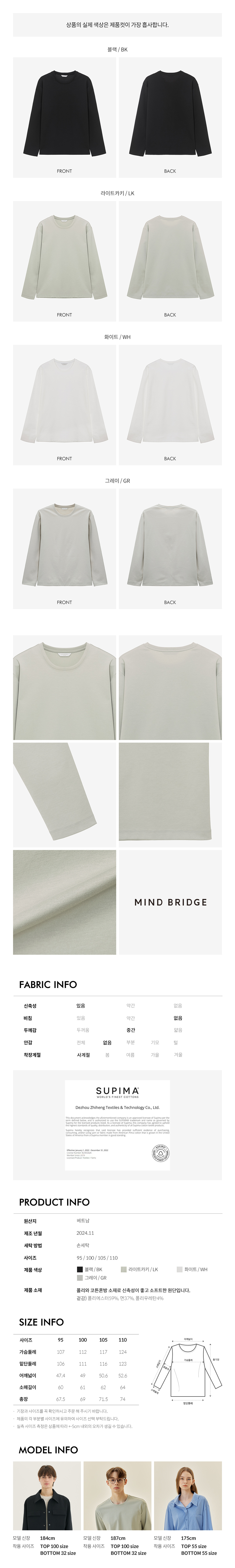 [수피마]라운드넥 분또 티셔츠 - 3color
