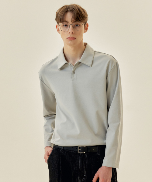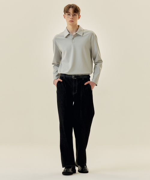 코튼 세미 오버핏 피케 티셔츠 [네이비]