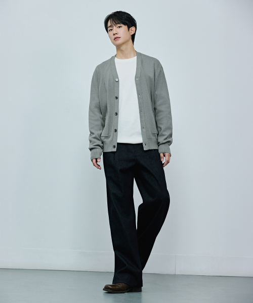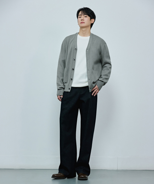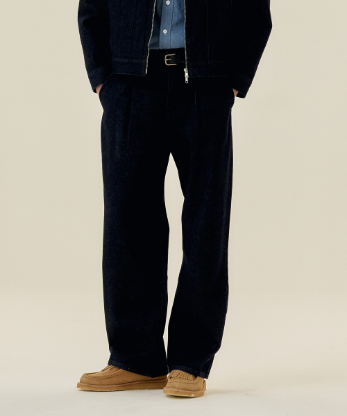[오정규 PICK] 와이드 원턱 블랙 로우 데님팬츠