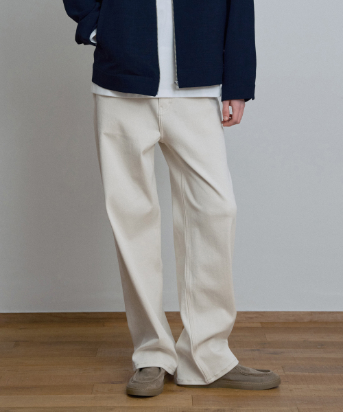 와이드 에크루 데님 팬츠