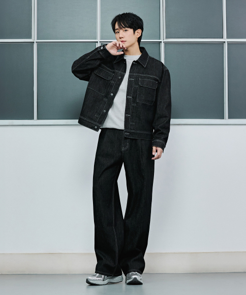 [오정규 PICK] 와이드 원턱 블랙 로우 데님팬츠