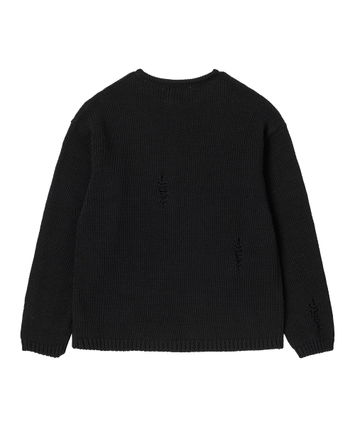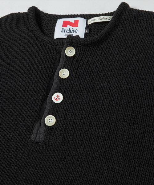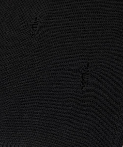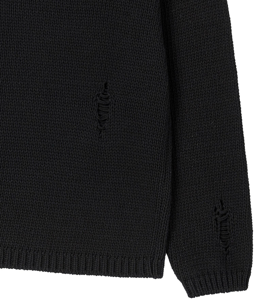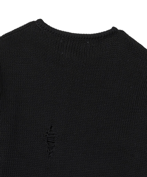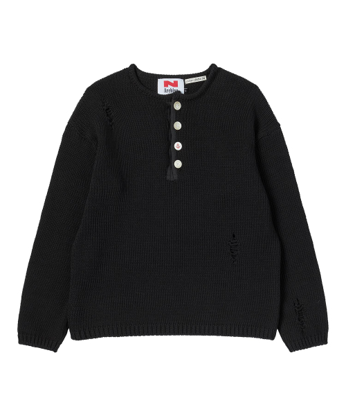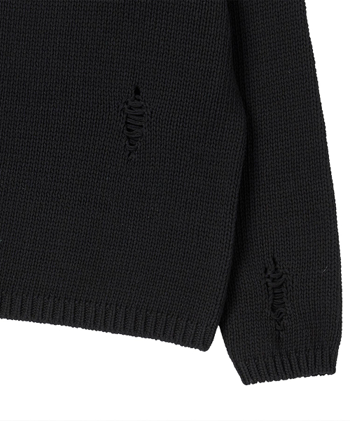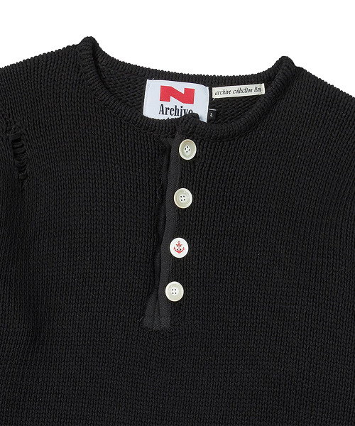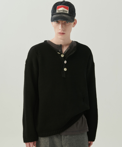 [COLLECTION LINE] 아카이브 헤비 웨이트 코튼 데미지 디테일 헨리넥 니트 블랙