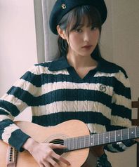 [장원영 Pick] COLLAR STRIPE BOARDER KNIT WH+BK