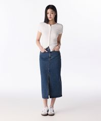 우먼즈 프론트 슬릿 데님 롱 스커트 [미디엄 인디고]