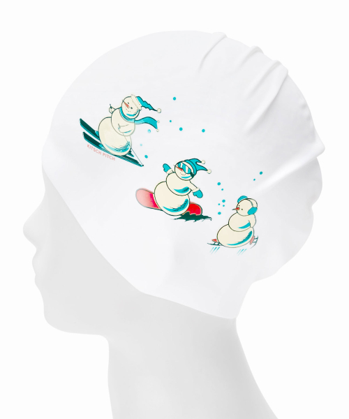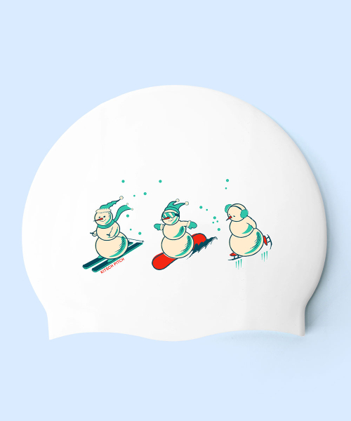 신나는 겨울스포츠를 즐기고 있는 세 명의 눈사람이 포인트인 수모에요. 홀리데이 느낌이 가득한 빈티지 무드의 일러스트로 청량하고 따뜻한 겨울을 즐겨보세요. - 100% 실리콘 소재로 편안한 착용감 - 내염소성이 우수하며 수영장 염소 성분으로부터 머리결 보호 가능