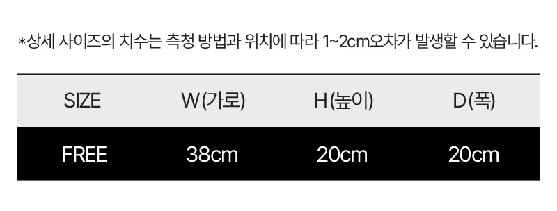 | 크기 | 실측(FR)사이즈(cm)-가로38 세로20 폭20 중량290g |
