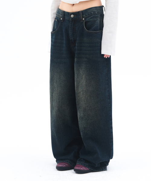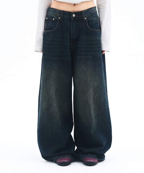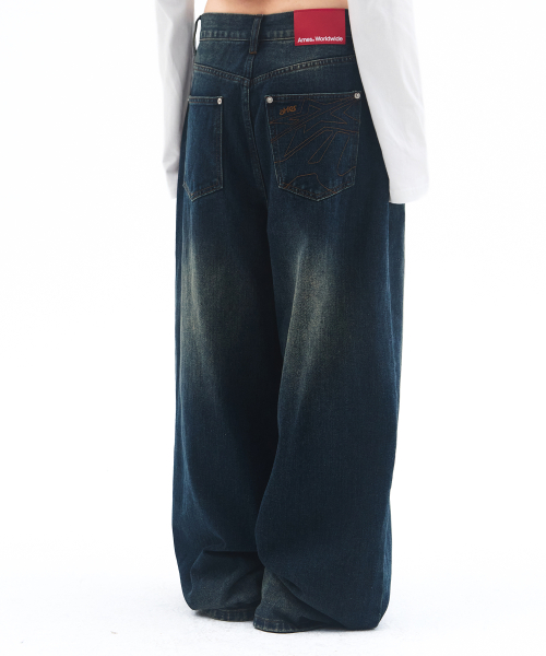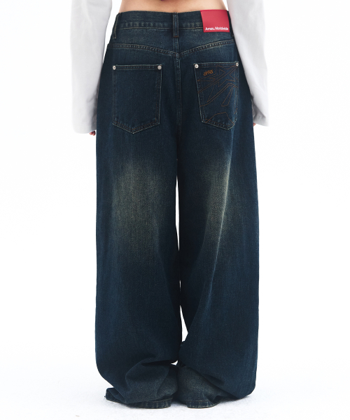 OVERFIT STITCH DENIM PANTS DEEP BLUE