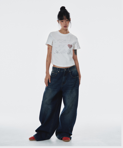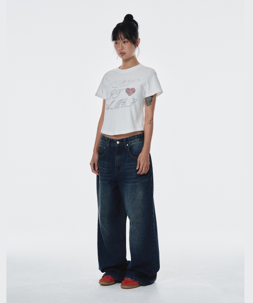 BACK HEART STITCH POCKET DENIM PANTS WHITE