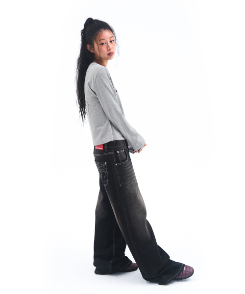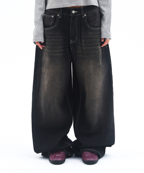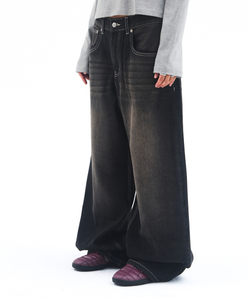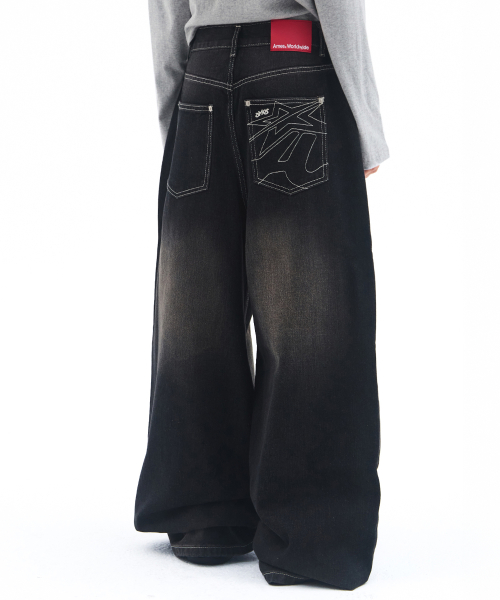 OVERFIT STITCH DENIM PANTS BLACK