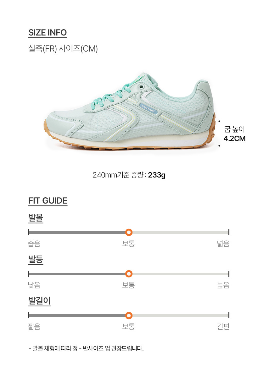 | 치수 | 실측(240) 사이즈(cm)-굽높이4.2 중량233g |