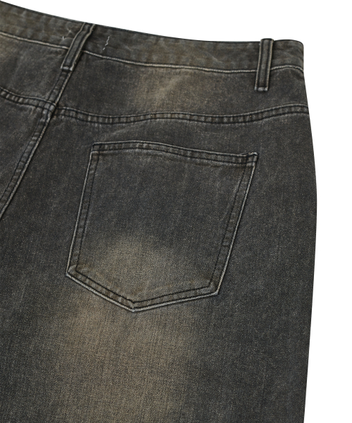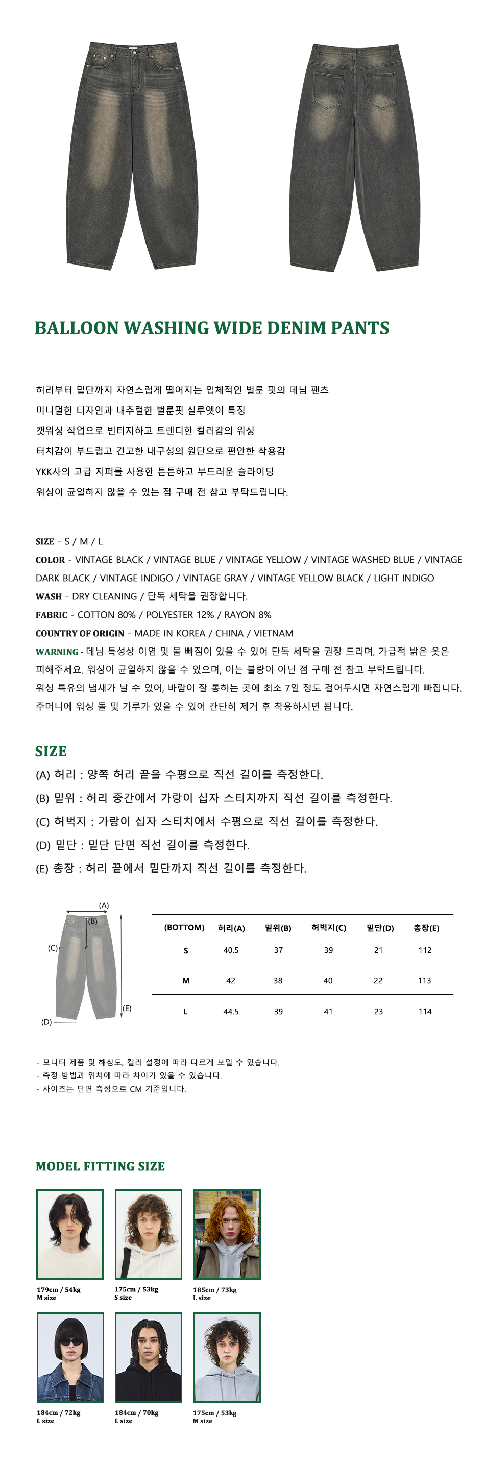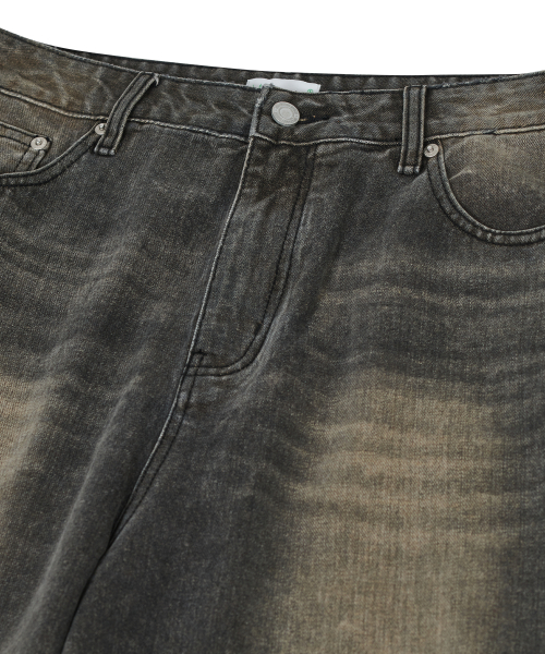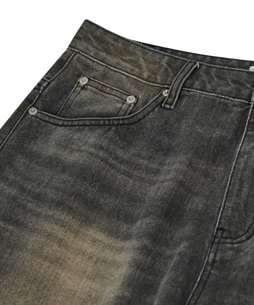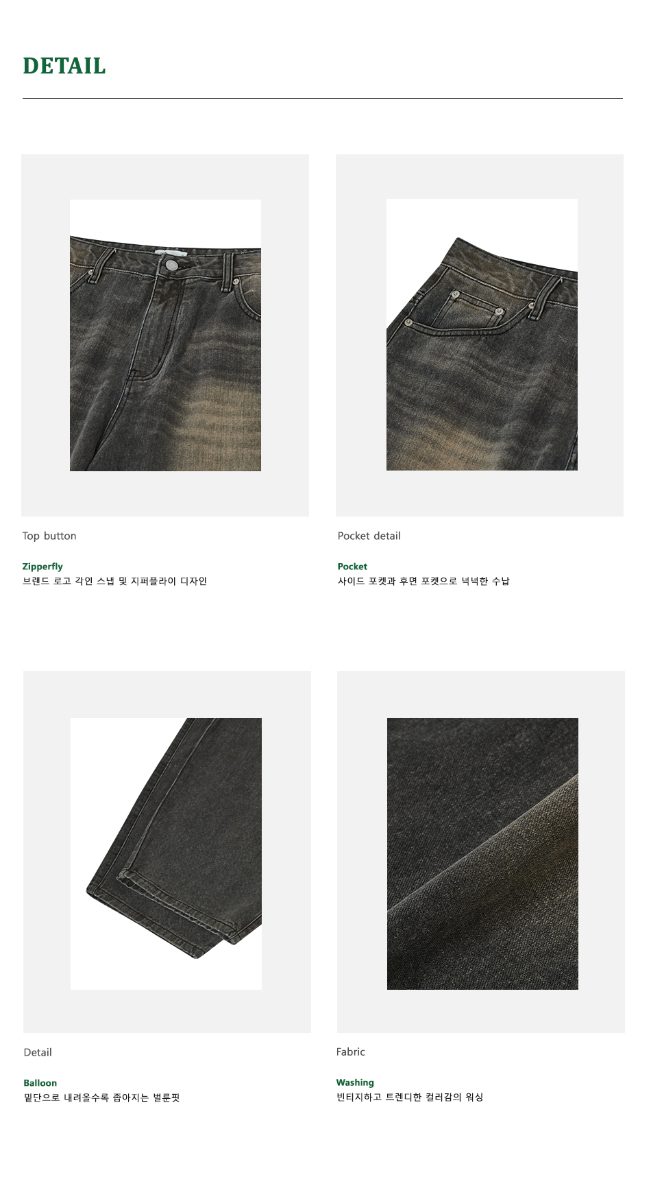 87-STAN047 벌룬핏 워싱 와이드 데님팬츠 빈티지옐로우블랙
