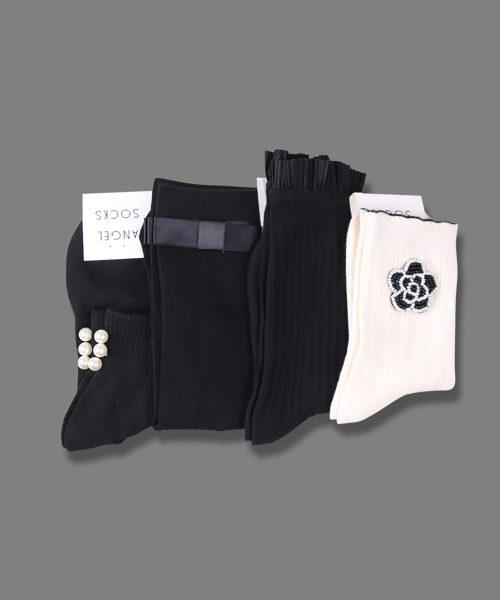 SET005-엔젤초코 여자 패션 울 반짝이 진주 래터링 양말 선물세트