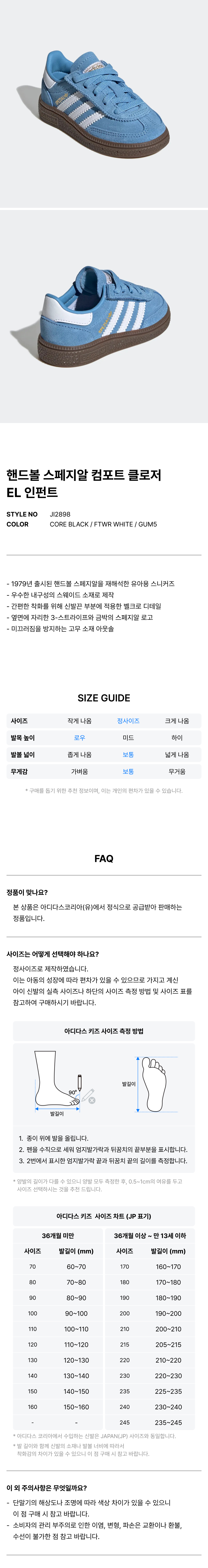 핸드볼 스페지알 컴포트 클로저 EL 인펀트 - 블루 / JI2900