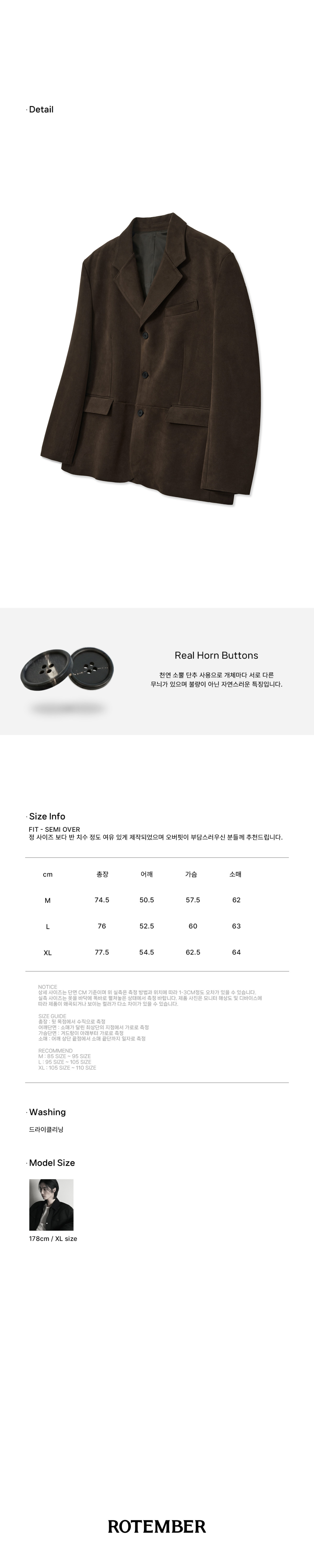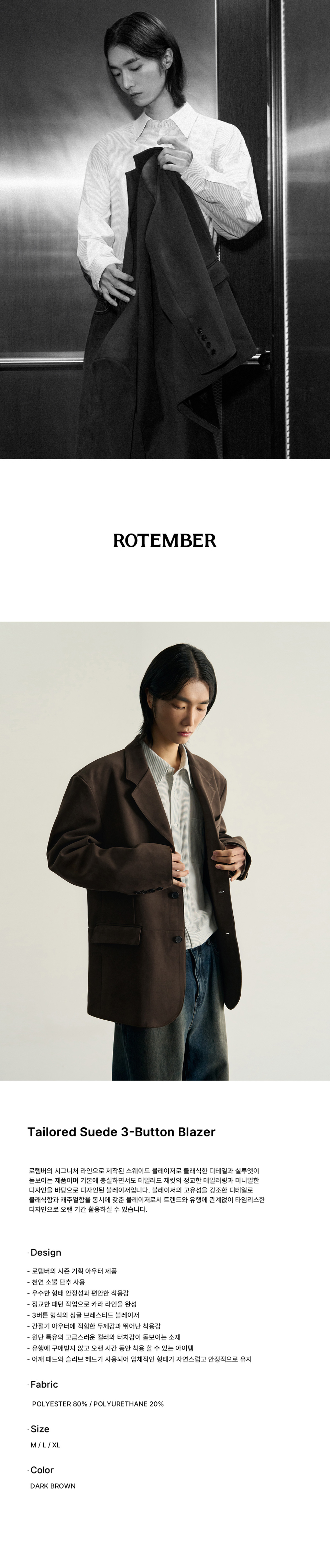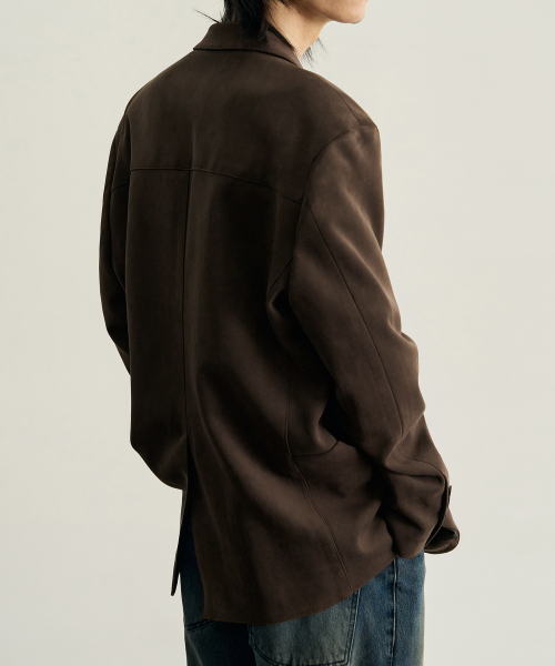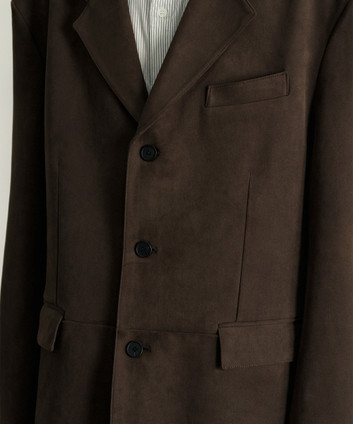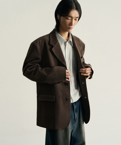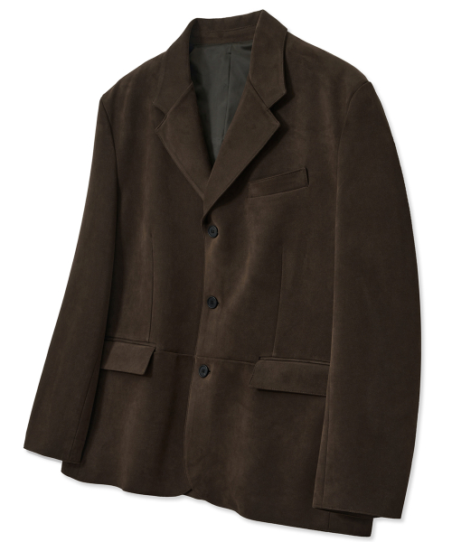 테일러드 스웨이드 쓰리 버튼 블레이저 [DARK BROWN]