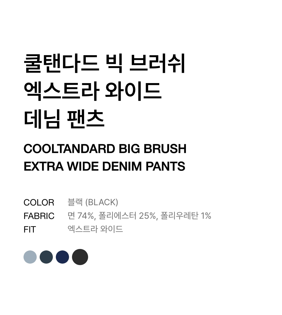 [쿨탠다드] 빅 브러쉬 엑스트라 와이드 데님 팬츠 [블랙]