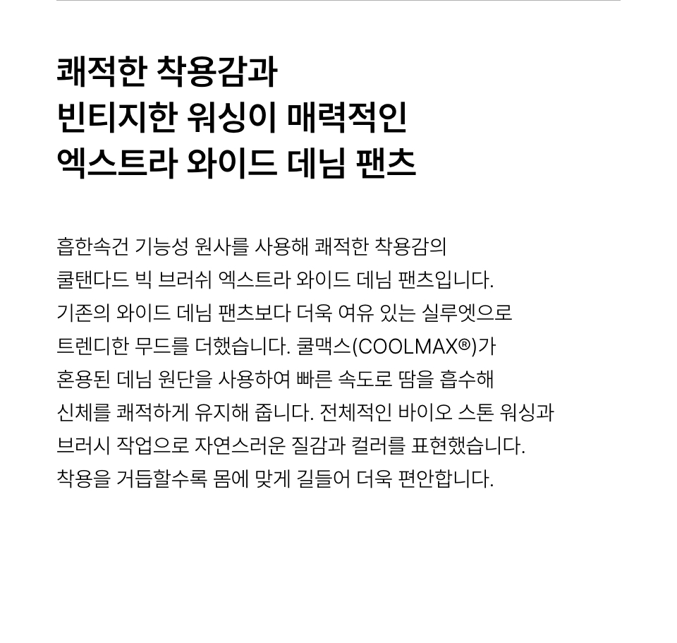 [쿨탠다드] 빅 브러쉬 엑스트라 와이드 데님 팬츠 [딥 인디고]