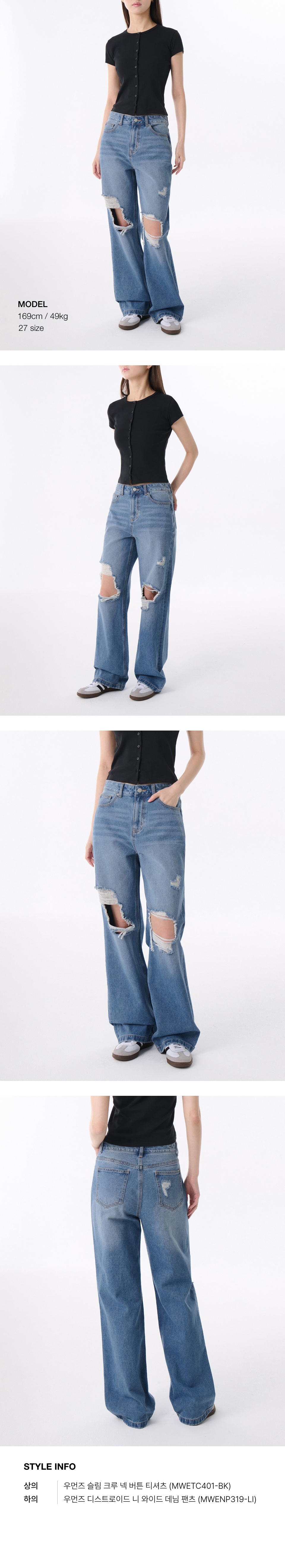 우먼즈 멀티 디스트로이드 와이드 데님 팬츠 [워시드 블랙]