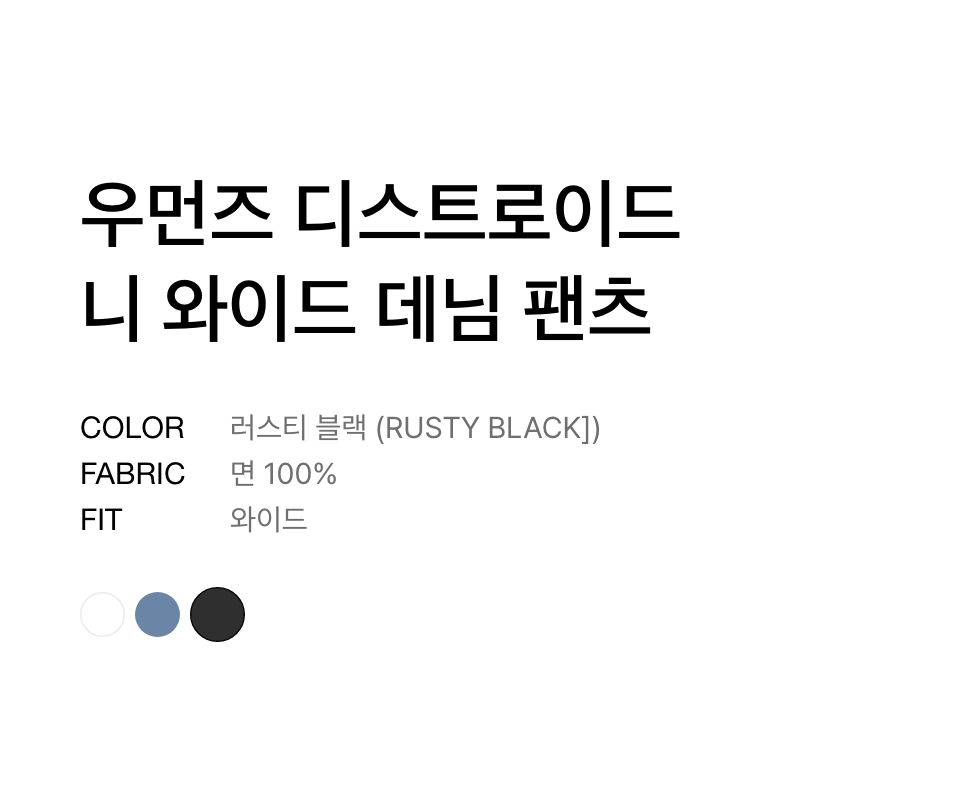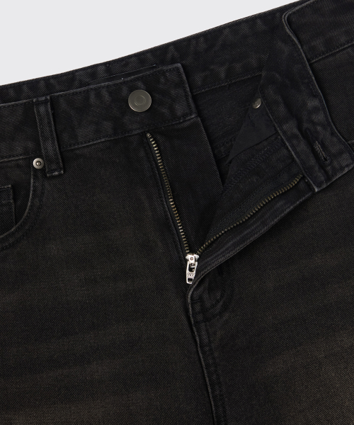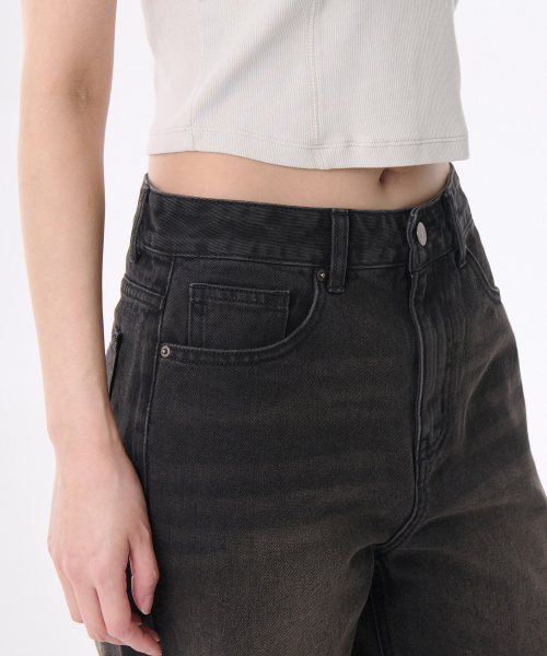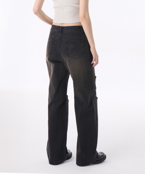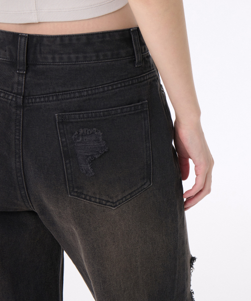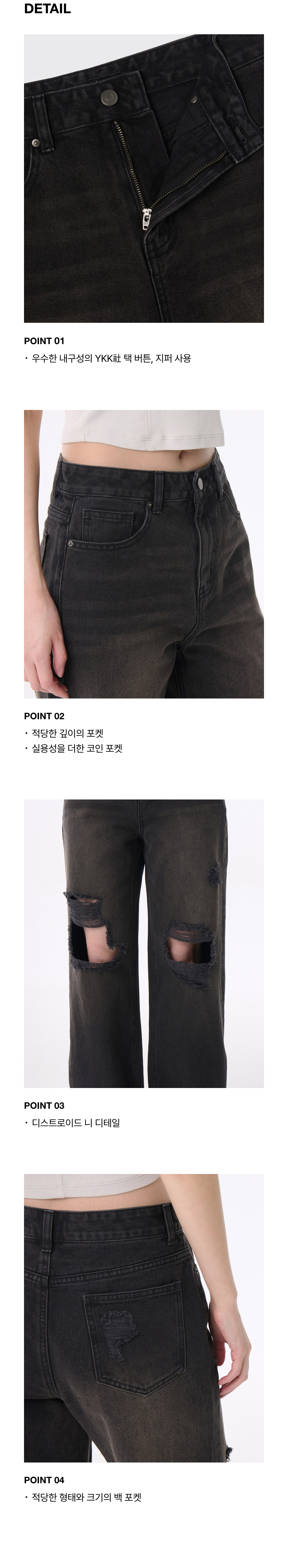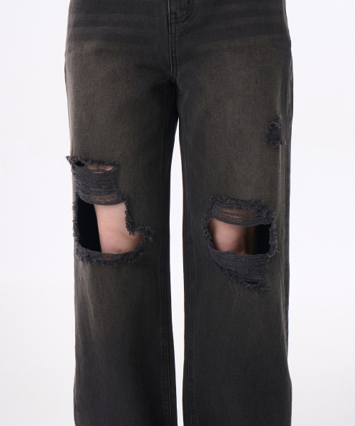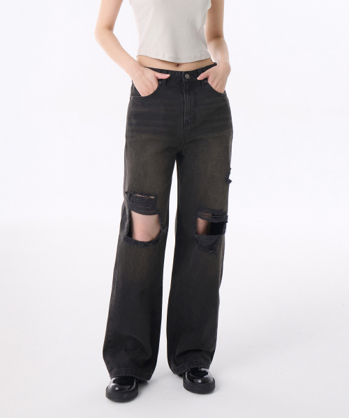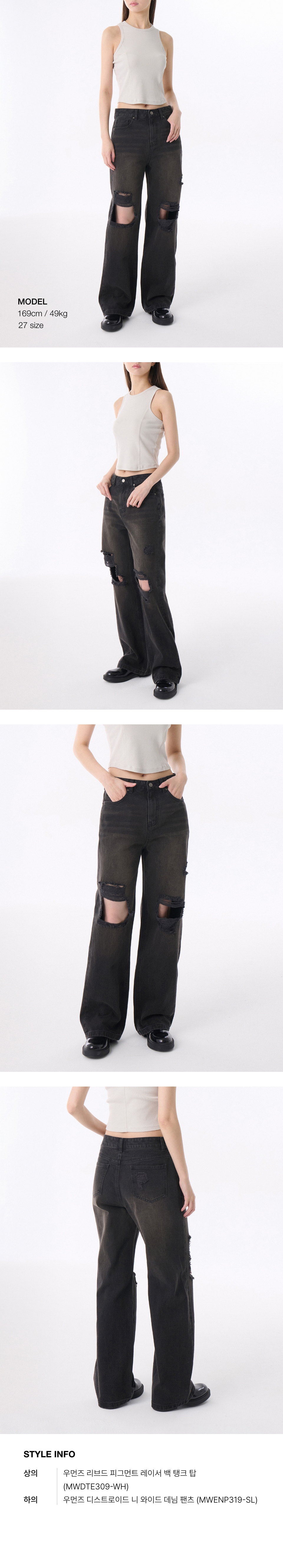 우먼즈 멀티 디스트로이드 와이드 데님 팬츠 [워시드 블랙]