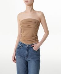 우먼즈 셔링 튜브 탑 [레드 베이지]